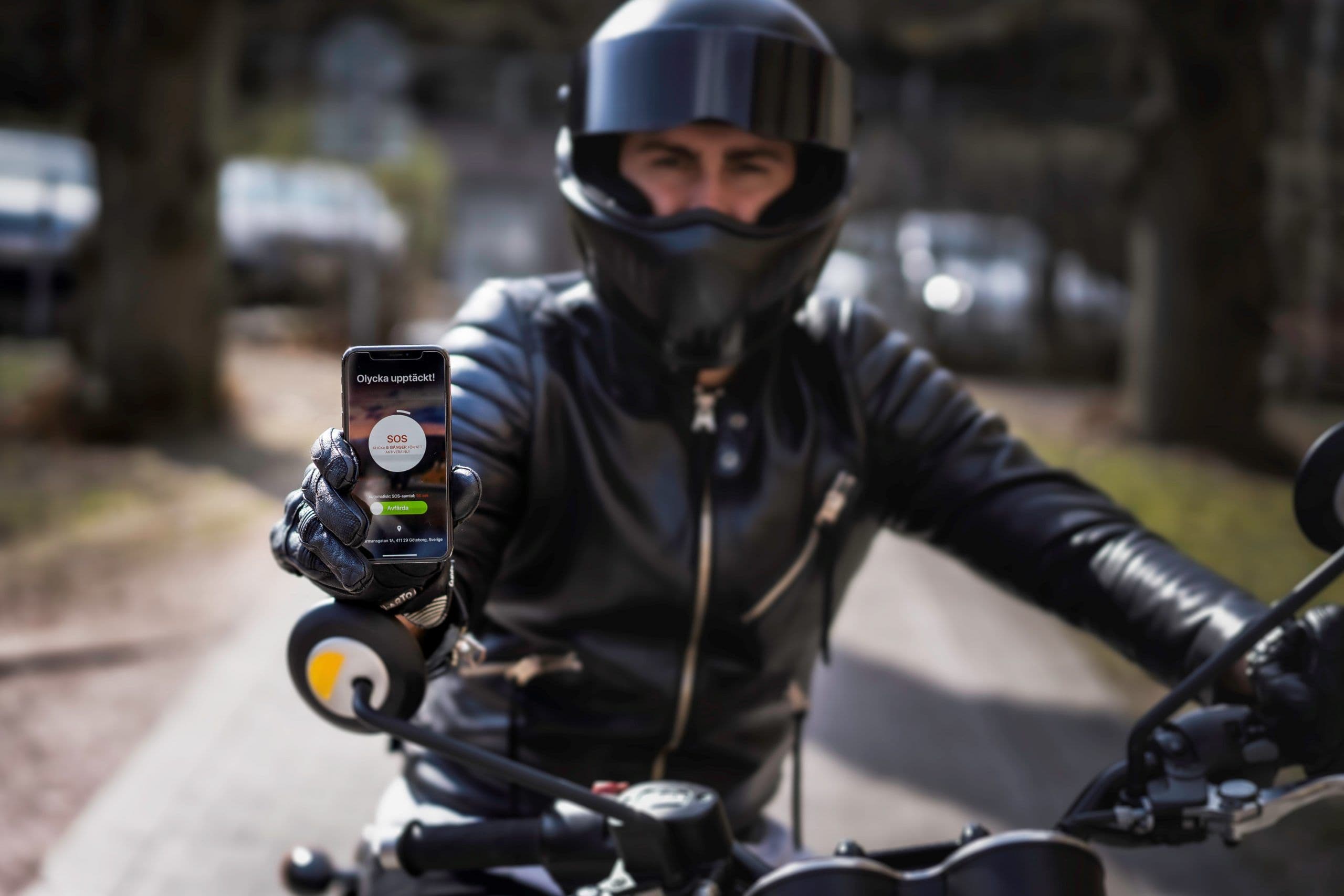– Vi ber alltid våra förare att starta appen innan de påbörjar en motorcykelkörning. Då kan man tracka och logga sin rutt och i bakgrunden analyserar vi mobilens sensorer. Vi analyserar värden kontinuerligt under körningen och på så sätt kan vi detektera en olycka. När appen upptäckt olyckan startas ett larm på telefonen och föraren har då 60 sekunder på sig att avlarma innan det skickas direkt till SOS-alarm eller förarens ICE-kontakter.