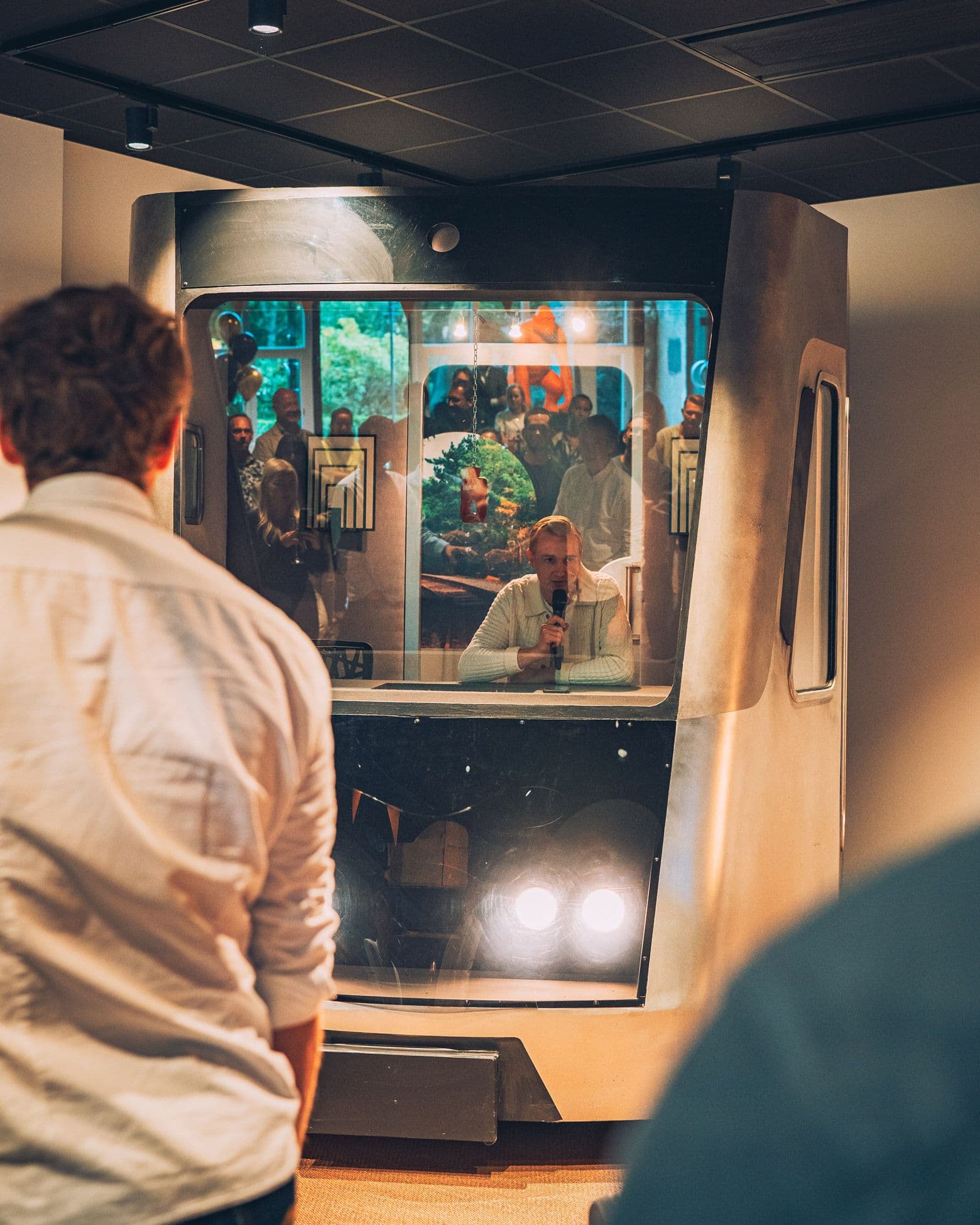 I samband med Musikhjälpen 2021 budade vi hem förstaklass-buren från SVTs program På Spåret. Kupén är idag en del av vår inredning och står öppen för våra medlemmar och besökare.
